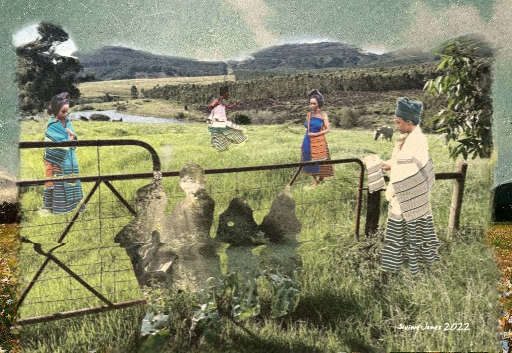 In these works, public and personal memory act together in a single scene, each particle holding space for a new way of sensing Xhosa identities, histories and sensibilities. Here the memories of Black subjects become pivotal in troubling the memorialising tactics that can in returning to one’s lineal connections. By cutting, splicing and layering images and texts, I am able to re-member myself into the past, visiting with memories that might not have been listened to before, or memories that wish to be heard back from, in new and different ways. Each visual acts as a clarion call for the unconventional Black subject to write against all its former notions of existence.